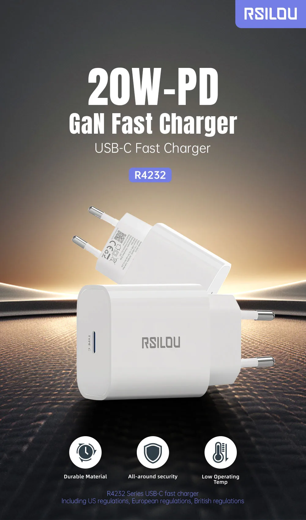 إذا كنت تبحث عن شاحن سريع، آمن، وعملي للإستخدام اليومي، فإن 20W USB-C Fast Charger-White GAN من RSILOU هو الحل المثالي. تم تصميم هذا الشاحن بتقنية GaN المتطورة ليمنحك سرعة شحن أعلى مع كفاءة ممتازة وحجم صغير يناسب التنقل والسفر. سواء كنت تستخدم هاتف iPhone أو Android، ستحصل على تجربة شحن مُستقرة وموثوقة تحافظ على بطارية جهازك على المدى الطويل، مع نظام حماية ذكي يمنحك راحة وإطمئنان في كل مرة تقوم فيها بالشحن.
