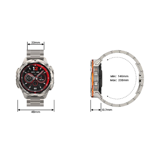 - النوع: ساعة ذكية Rugged (مقاومة للصدمات والظروف القاسية)