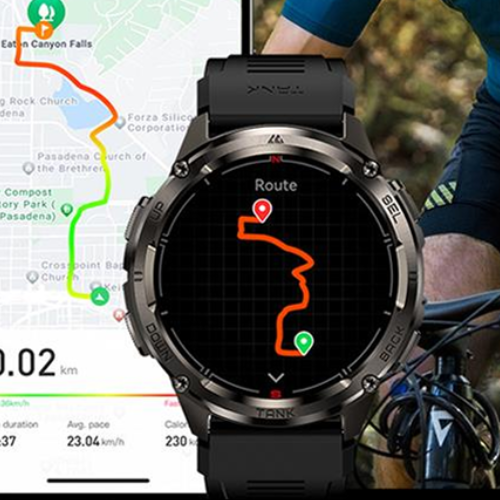 تتيح لك الساعة تتبع مسارات الجري والمشي والرحلات بدقة عالية دون الحاجة إلى الهاتف، مما يجعلها مثالية للأنشطة الخارجية.