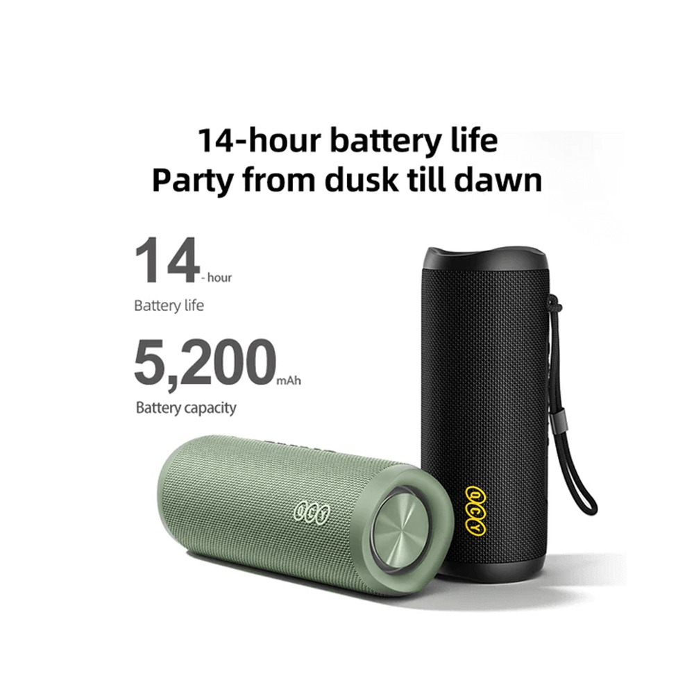احصل علي QCY speaker sp7 يوفر صوت عالي وقوي مع باس عميق، بطارية تدوم حتى 12 ساعة، إتصال Bluetooth 5.0 ثابت، وتصميم عملي سهل الحمل للإستخدام اليومي.