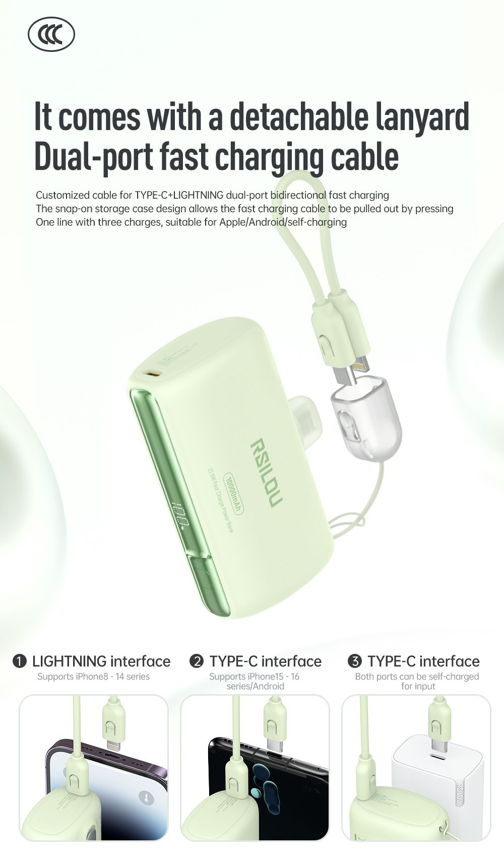 يوفر باور بانك R1028 شحنًا سريعًا وفعالًا، حيث يمكنه شحن هواتف آبل وهواوي المتوافقة حتى 50% خلال 35 دقيقة فقط، مما يوفر الوقت ويمنحك طاقة فورية عند الحاجة.
