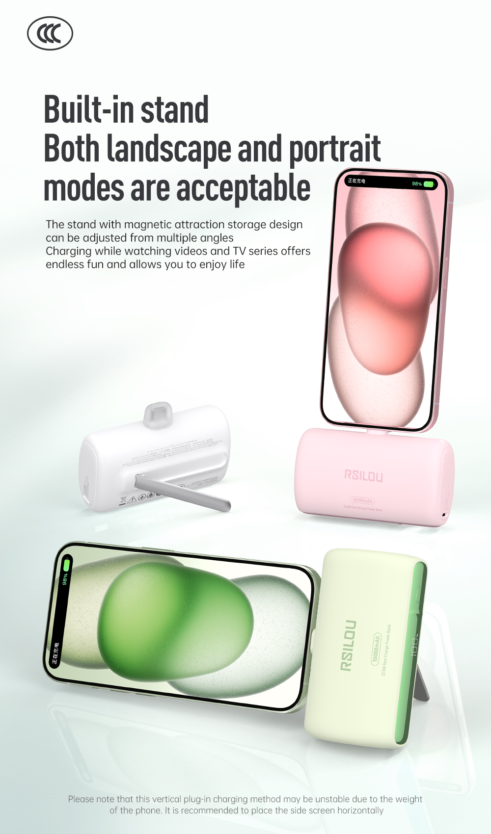 يأتي الباور بانك بحامل عملي يتيح تثبيت الهاتف أثناء الشحن، مما يجعله مثاليًا لمشاهدة الفيديوهات، إجراء المكالمات، أو تصفح الهاتف بسهولة وراحة.