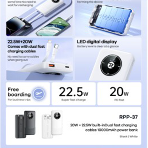 - كابلات مدمجة لتوفير تجربة شحن سلسة دون الحاجة إلى كابلات إضافية