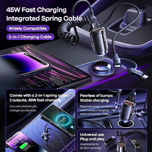- عدد المخارج: منفذ USB + كابل مدمج 2 في 1 (Type-C & Lightning)