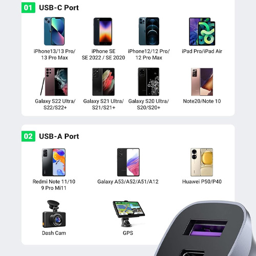 مميزات شاحن السيارة UGREEN 2-Port Fast Car Charger 30W