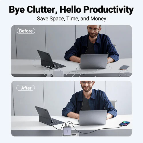 - شحن متزامن لأكثر من جهاز بفعالية عبر منافذ USB-C و USB-A