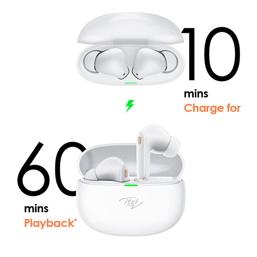 - 10 دقائق من الشحن تمنحك 60 دقيقة من التشغيل: يمكنك شحن سماعات الأذن بسرعة والاستمتاع بالاستماع إلى الصوتيات دون توقف.