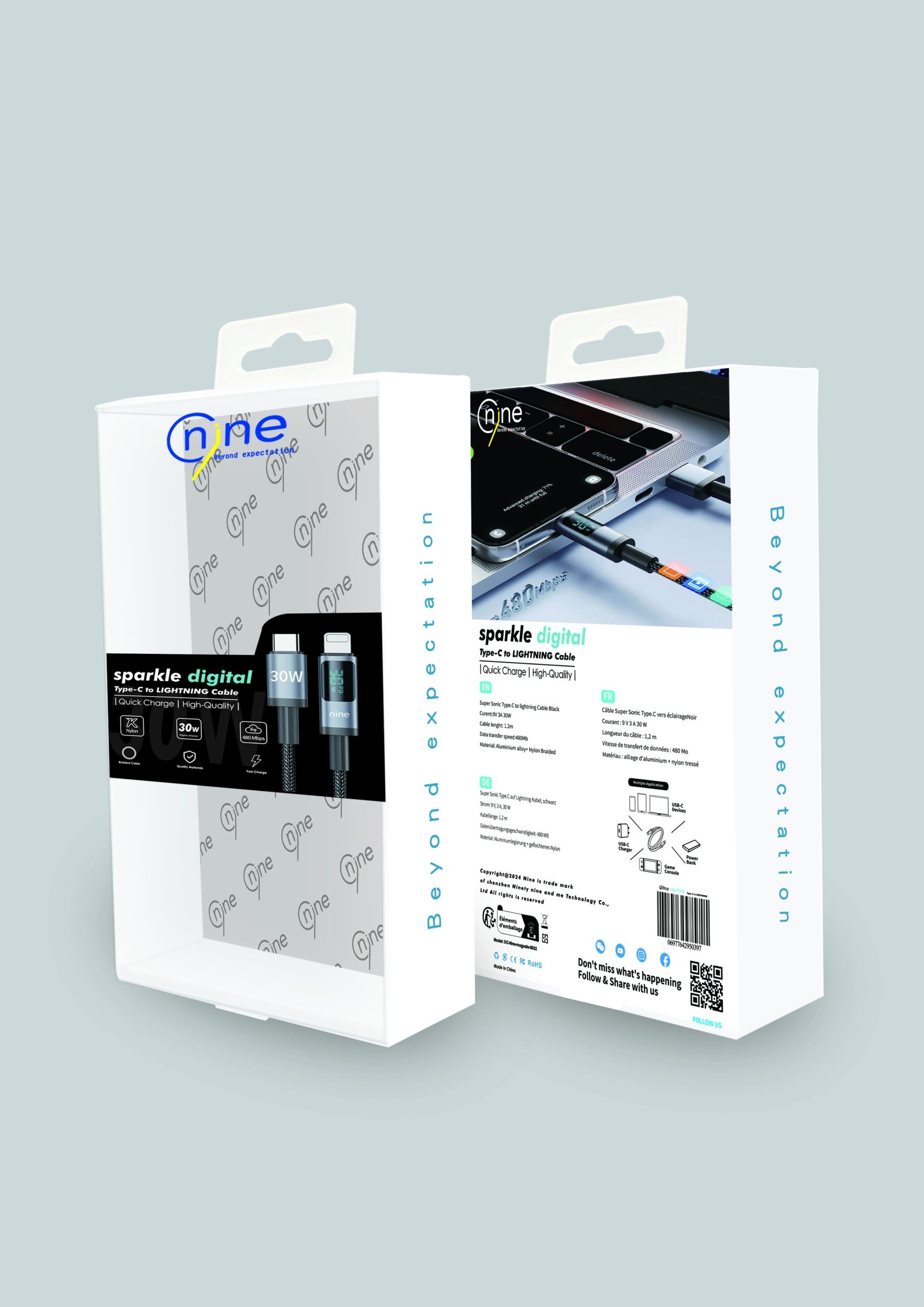 لا تفوت الأداء والجودة – اطلب الآن كابل NineTec Sparkle Digital 1.2m من بيل تك لشحن ذكي وموثوق!