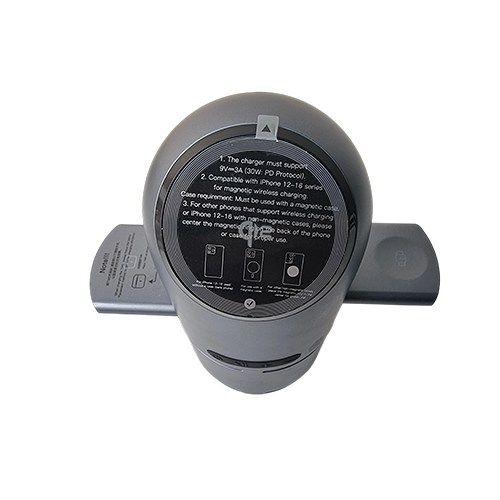 - شحن ثلاثي متزامن للهاتف، الساعة، وسماعات AirPods