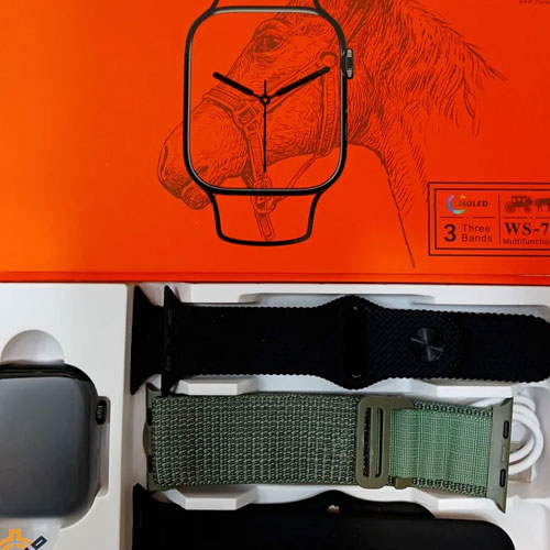 - 3 استراب: 2 مطاطي (أسود، برتقالي) و1 قماش (أخضر)