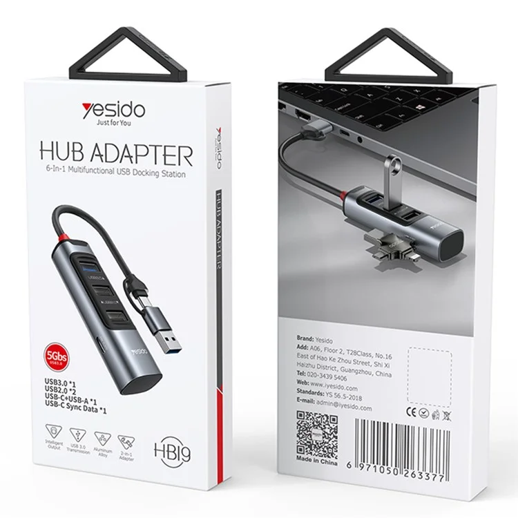 وصلة YESIDO HB19 توسيع منافذ USB في الكمبيوتر، تتميز بـ:
