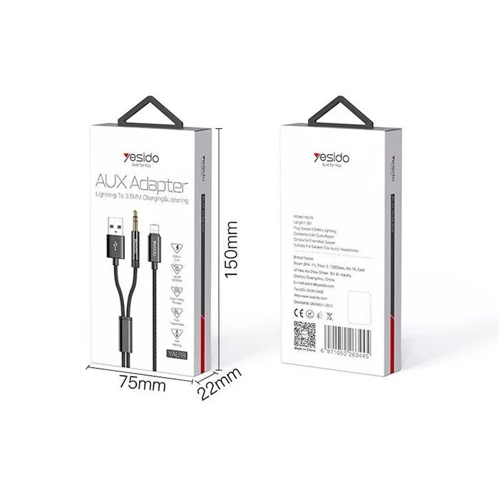YESIDO YAU 18 كابل شحن ايفون + مخرج صوت